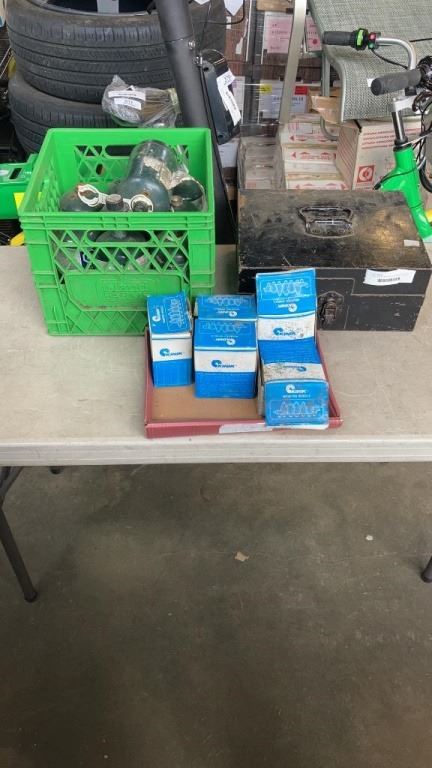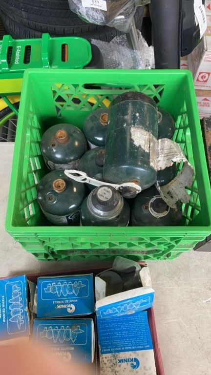 CASE, CRATE AND TRAY OF SPEED DRILLS, BITS, GRINDING BITS AND PROPANE TANKS, SOME FULL