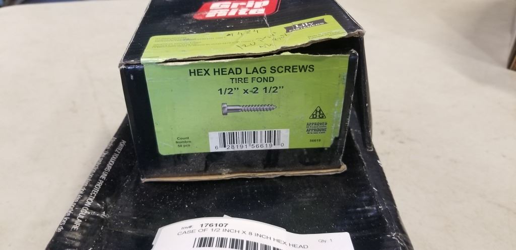 CASE OF 1/2 INCH X 8 INCH HEX HEAD BOLTS, AND 1/2 INCH X 2-1/2 INCH BOLTS