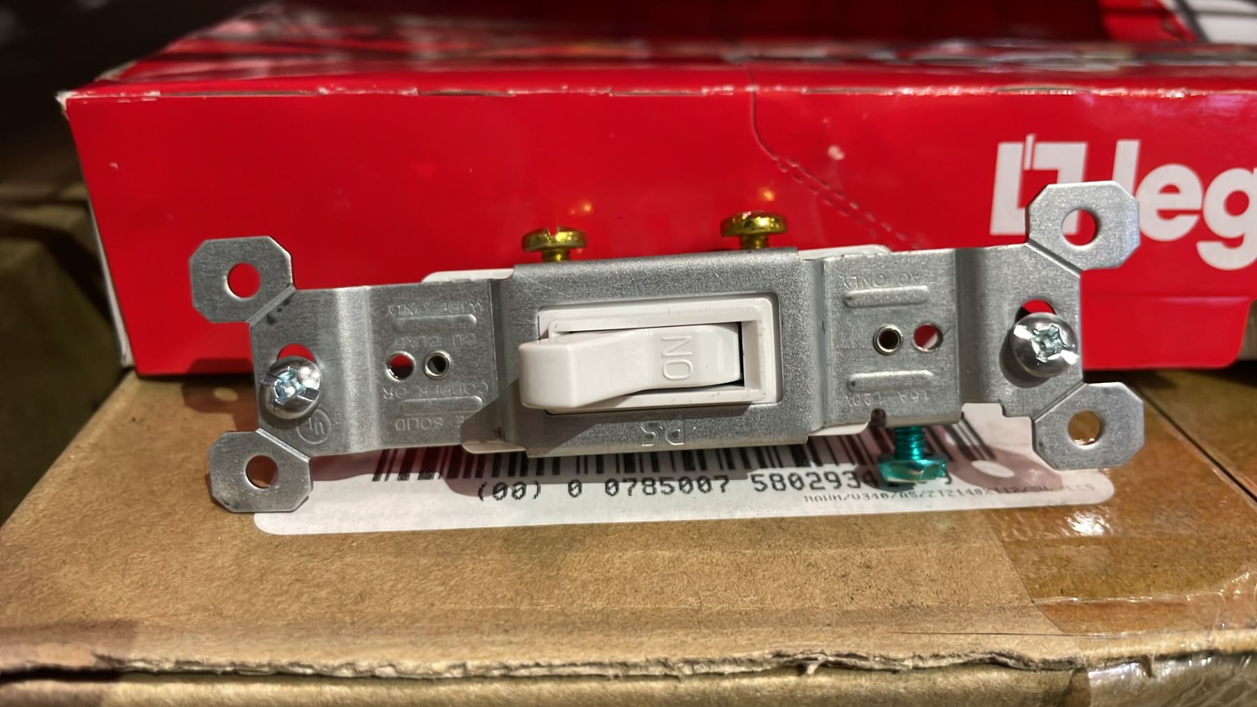 CASE OF (100) LEGRAND PASS & SEYMOUR 660-WG TRADEMASTER TOGGLE SWITCH, SINGLE POLE SIDE & PUSH WIRED 15A 120VAC GROUNDED