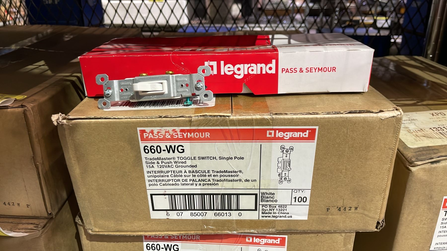 CASE OF (100) LEGRAND PASS & SEYMOUR 660-WG TRADEMASTER TOGGLE SWITCH, SINGLE POLE SIDE & PUSH