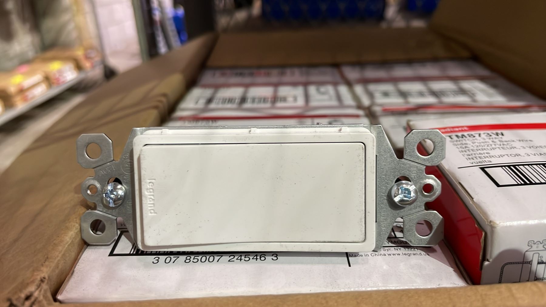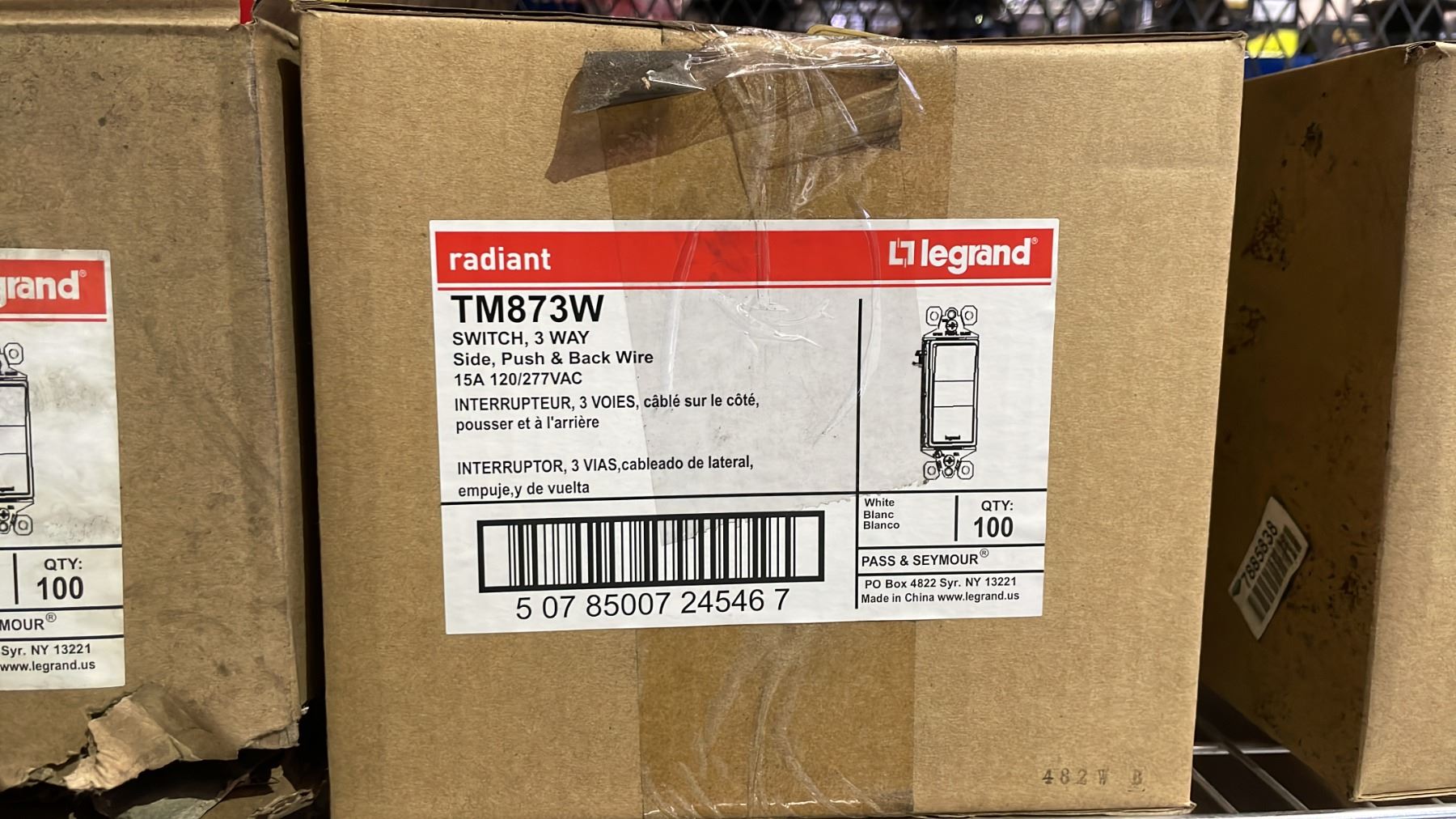 CASE OF (100) LEGRAND RADIANT TM873W LIGHT SWITCH, 3-WAY SIDE, PUSH & BACK WIRE 15A 120/277VAC