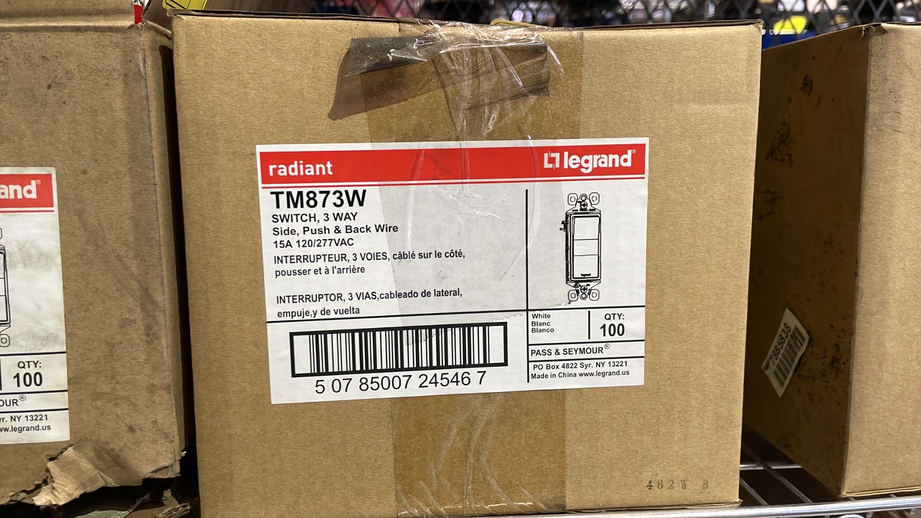CASE OF (100) LEGRAND RADIANT TM873W LIGHT SWITCH, 3-WAY SIDE, PUSH & BACK WIRE 15A 120/277VAC