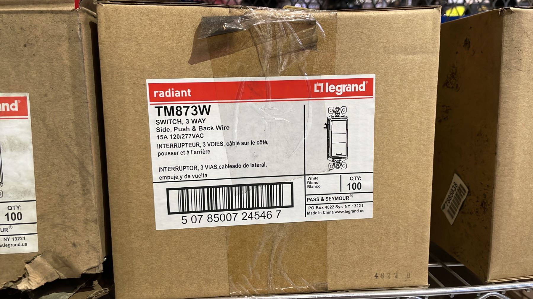 CASE OF (100) LEGRAND RADIANT TM873W LIGHT SWITCH, 3-WAY SIDE, PUSH & BACK WIRE 15A 120/277VAC
