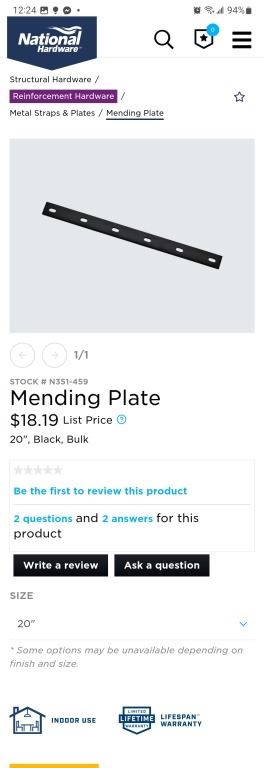CASE OF 15 NEW 20" MENDING PLATES N351-459 BLACK FINISH RETAIL $285