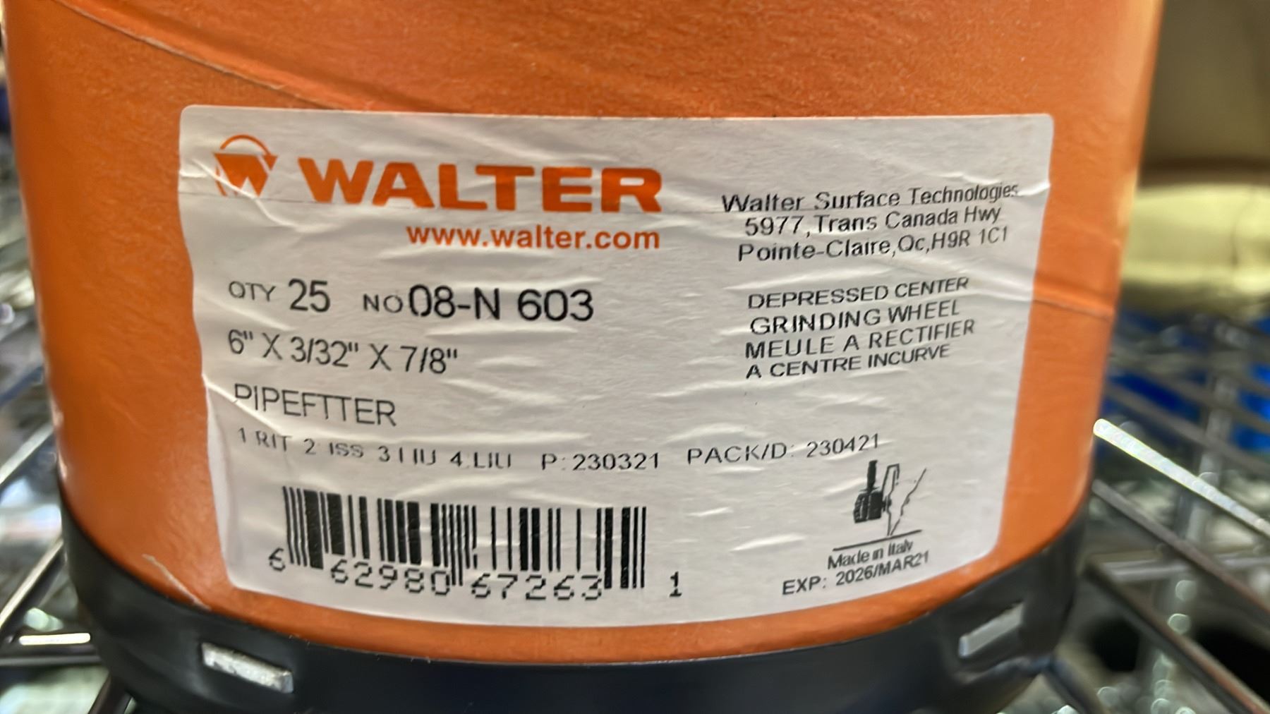 CASE OF 25 NEW WALTER 6" X 3/32" X 7/8" ANGLE GRINDER CUT-OFF DISCS