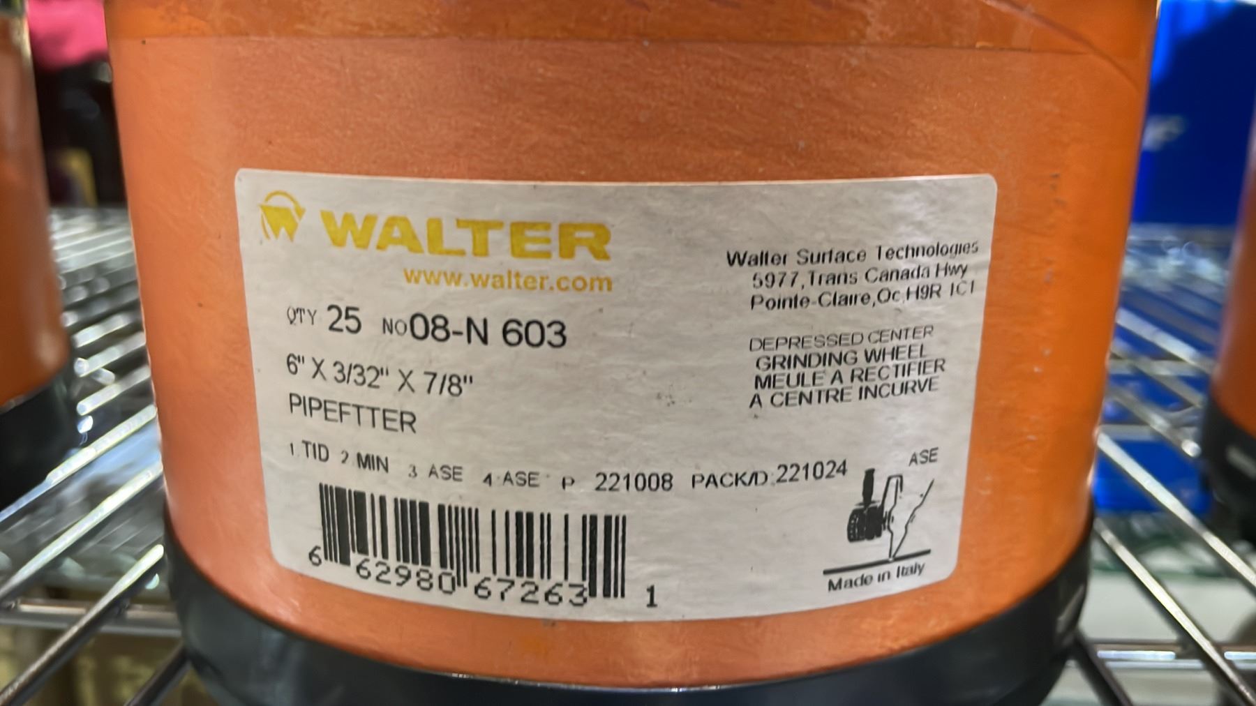 CASE OF 25 NEW WALTER 6" X 3/32" X 7/8" ANGLE GRINDER CUT-OFF DISCS