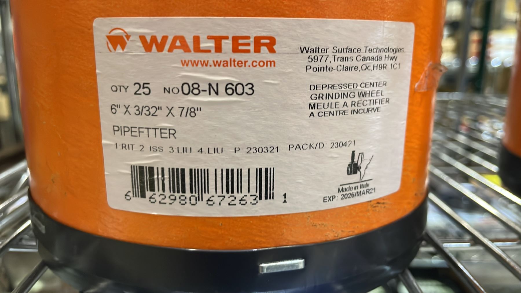 CASE OF 25 NEW WALTER 6" X 3/32" X 7/8" ANGLE GRINDER CUT-OFF DISCS