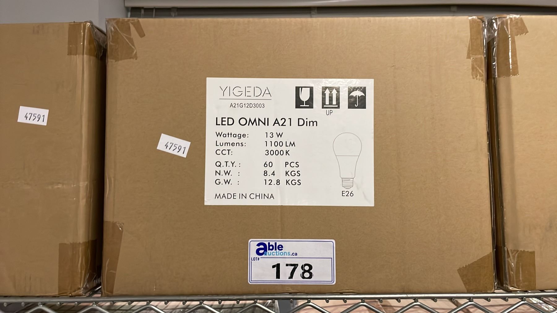 CASE OF 60 YIGEDA LED OMNI A21 DIM E26 LIGHTS 3000K