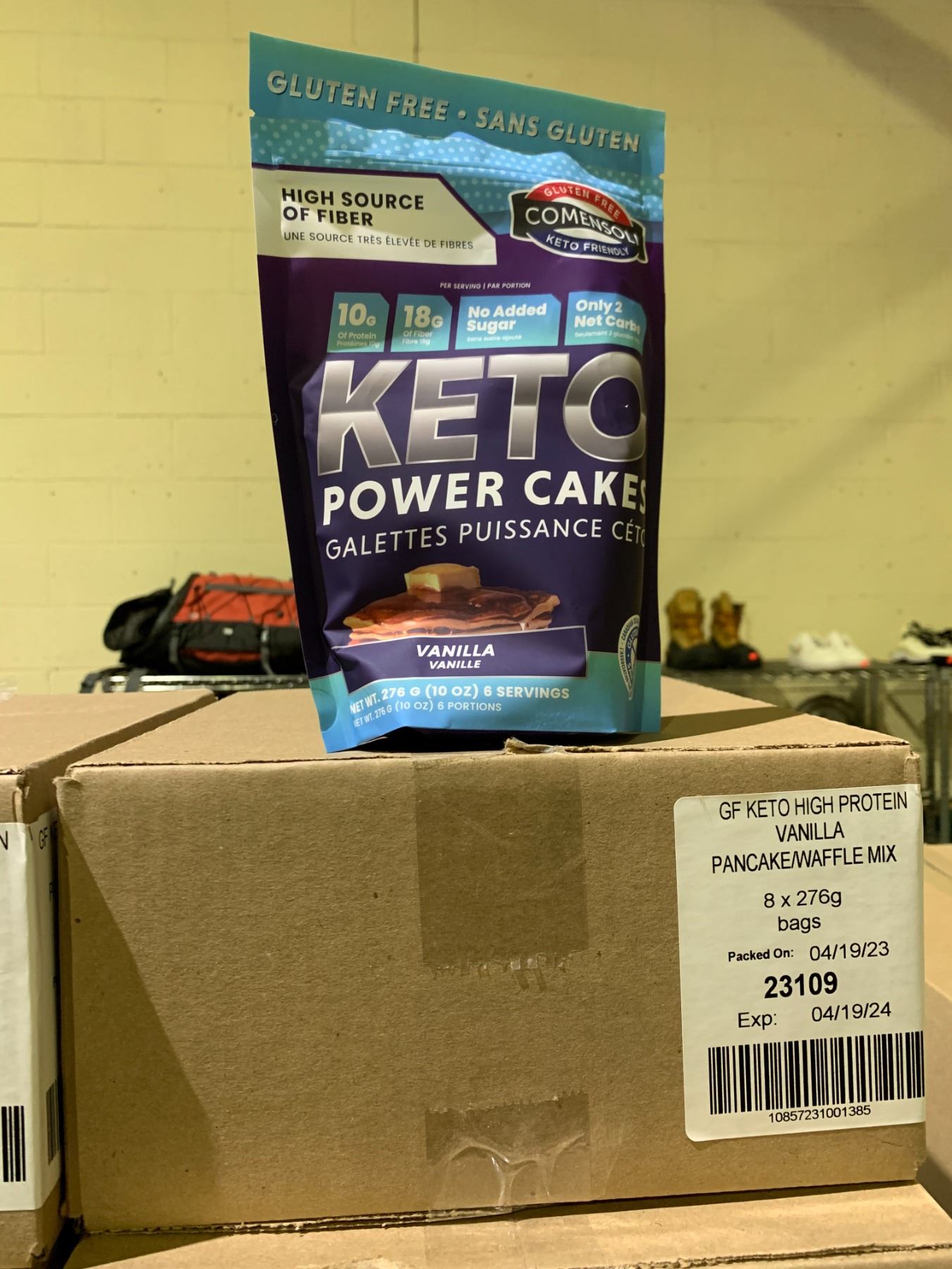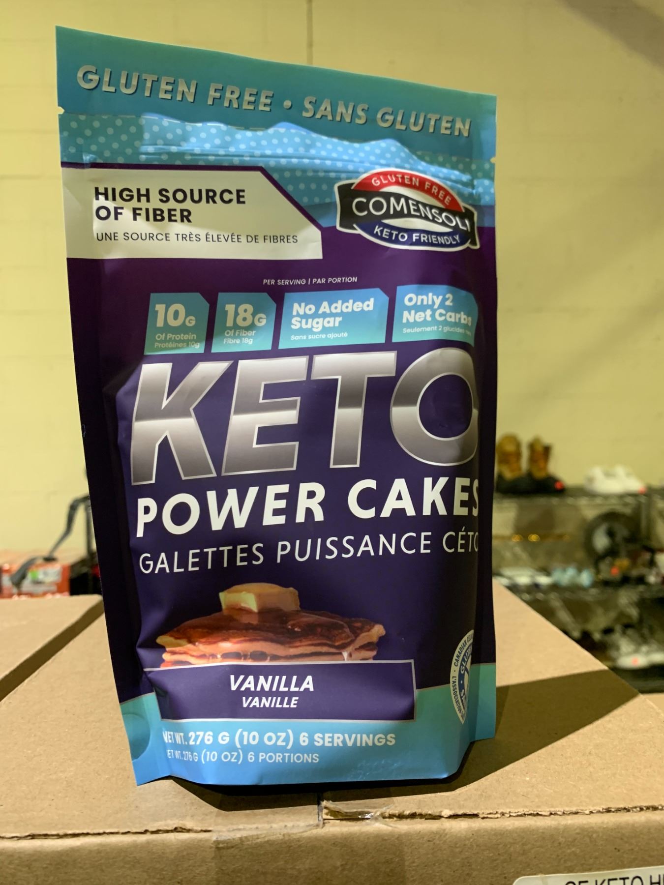 CASE OF 8 COMENSOLI POWER CAKES GLUTEN FREE VANILLA PANCAKE/WAFFLE MIX (276G EACH)