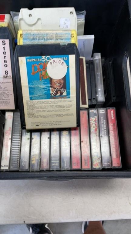 CASE OF 8 TRACKS, TAPES AND 8 TRACK TO TAPE CONVERTER - INCLUDES DEF LEPPARD, VINTAGE TECHNO AND RAP