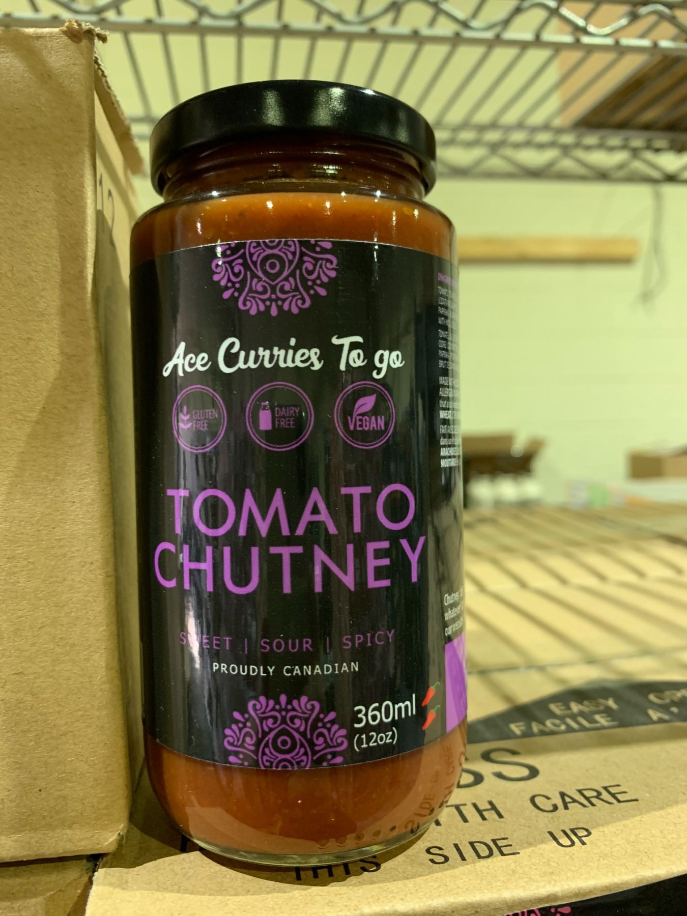 CASE OF ACE CURRIES TO GO TOMATO CHUTNEY SAUCE (12 JARS PER CASE)