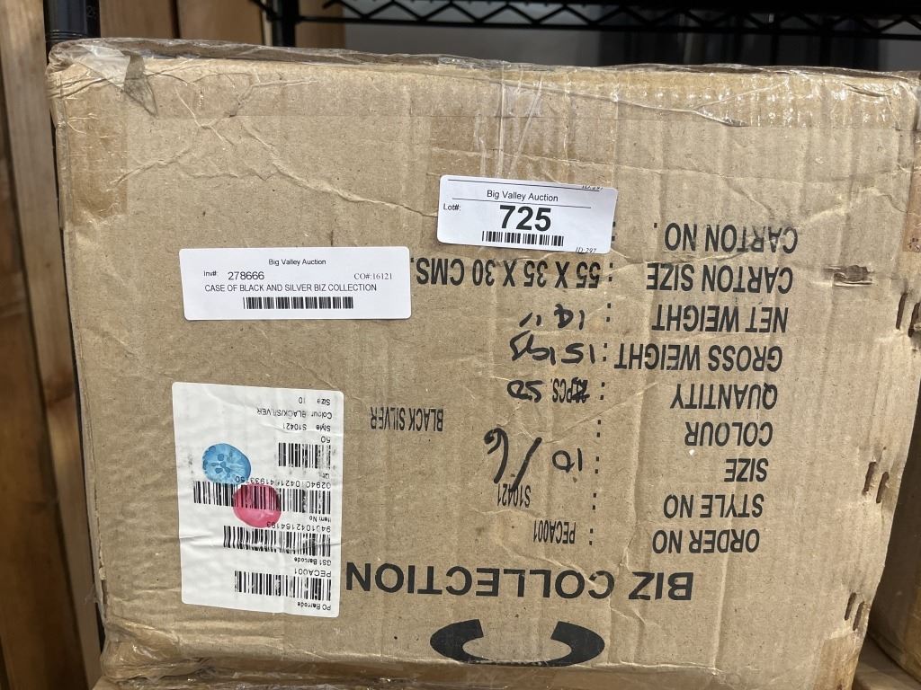 CASE OF BLACK AND SILVER BIZ COLLECTION LADIES CUBAN 3/4 SLEEVE SHIRT BREATHABLE POLYESTER