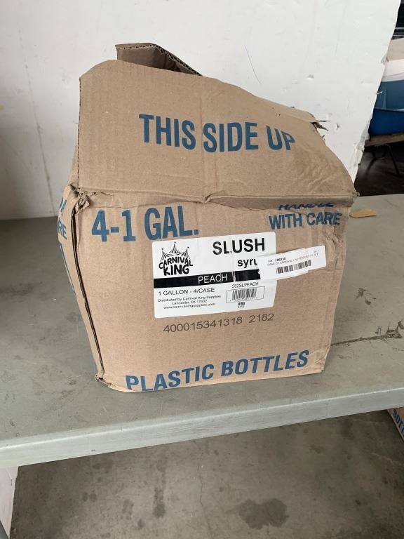 CASE OF CARNIVAL KING PEACH SLUSH, 4-1 GALLON JUGS