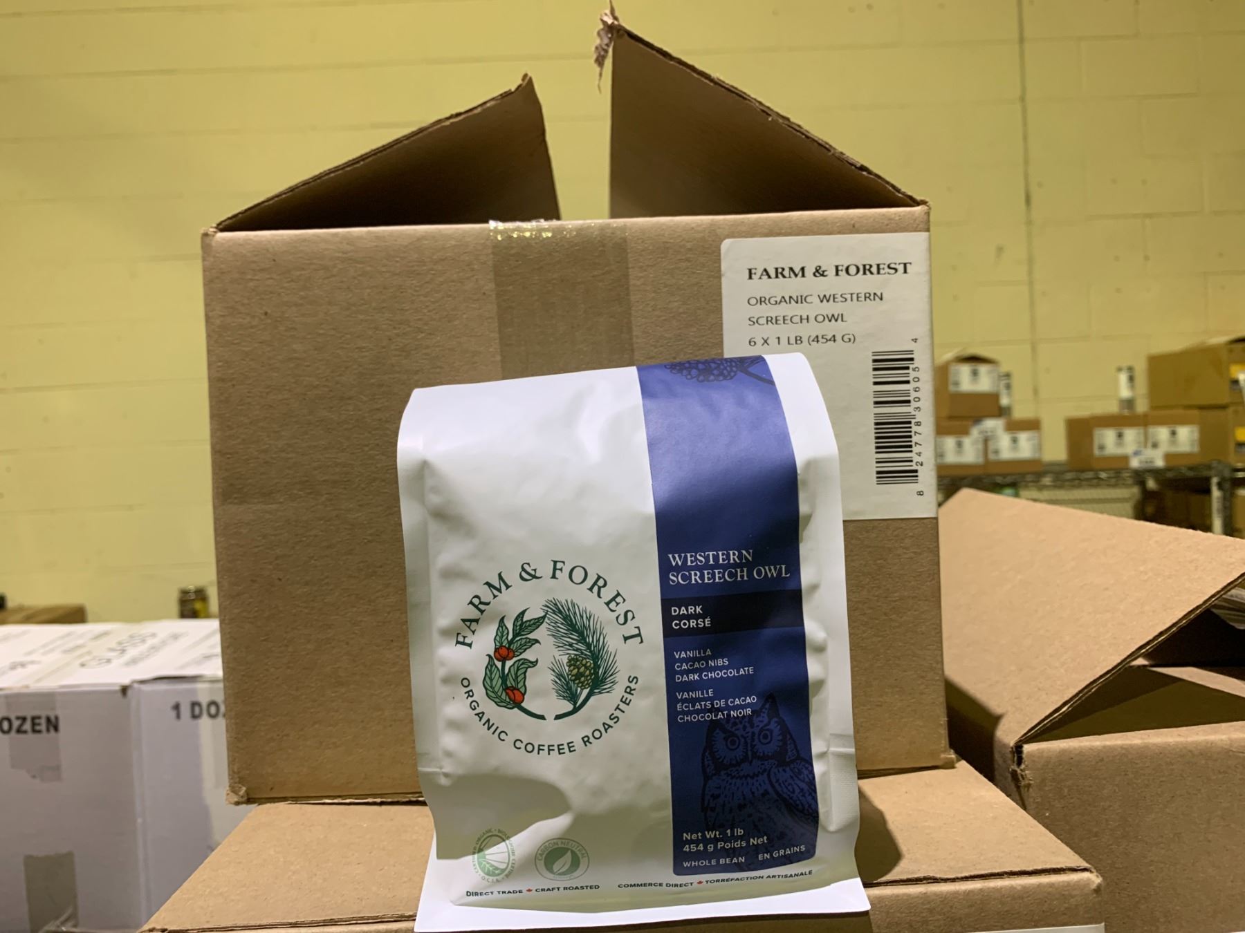 CASE OF FARM & FOREST WESTERN SCREECH OWL DARK ROAST COFFEE (6 BAGS PER CASE)