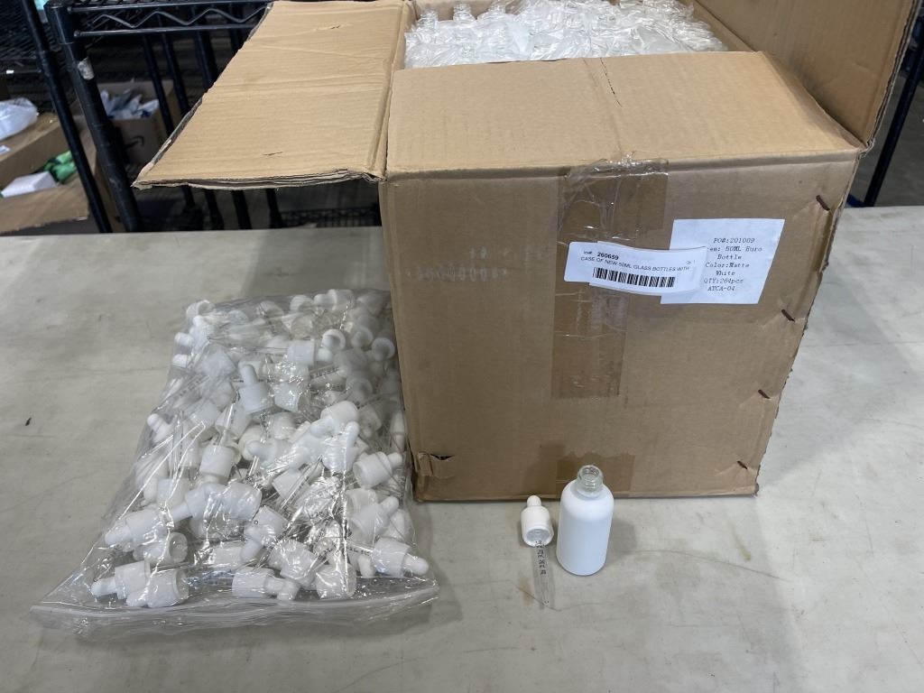CASE OF NEW 50ML GLASS BOTTLES WITH DROPPER LIDS