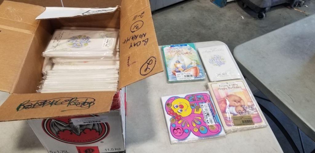 CASE OF NEW BIRTHDAY GREETING CARDS, SOME VINTAGE FROM ENGLAND