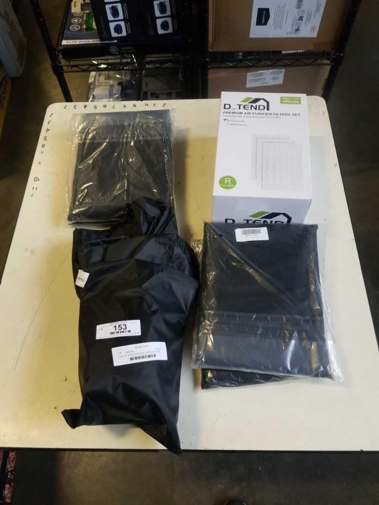 CASE OF NEW DETEND AIR PURIFIER FILTERS AND 5 PORTABLE AC UNIT COVERS.