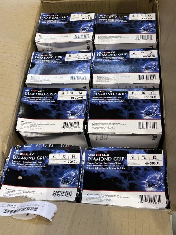CASE OF NEW LATEX GLOVES SIZE XL - 8 BOXES TOTAL, 800 GLOVES TOTAL
