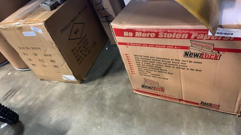 CASE OF NEW NEWSLOCK MAILSLOTS AND CASE OF BOY HOCKEY FIGURE FRAMES