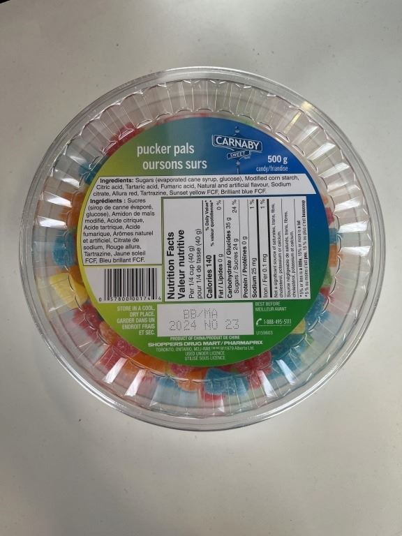 CASE OF NEW PUCKER PALS CANDY, (SOUR PATCH STYLE) 8 TUBS, 500G EACH BB NOV/2024