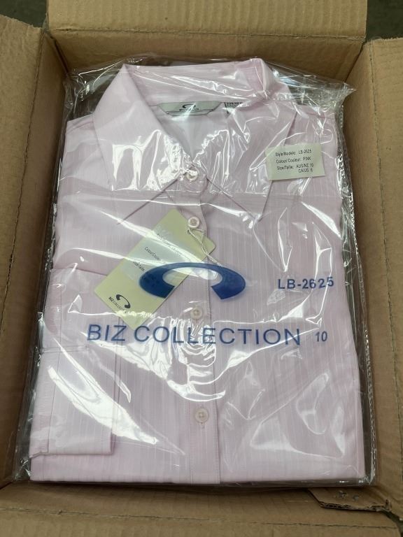 CASE OF PINK BIZ COLLECTION LADIES CUBAN 3/4 SLEEVE SHIRT BREATHABLE POLYESTER