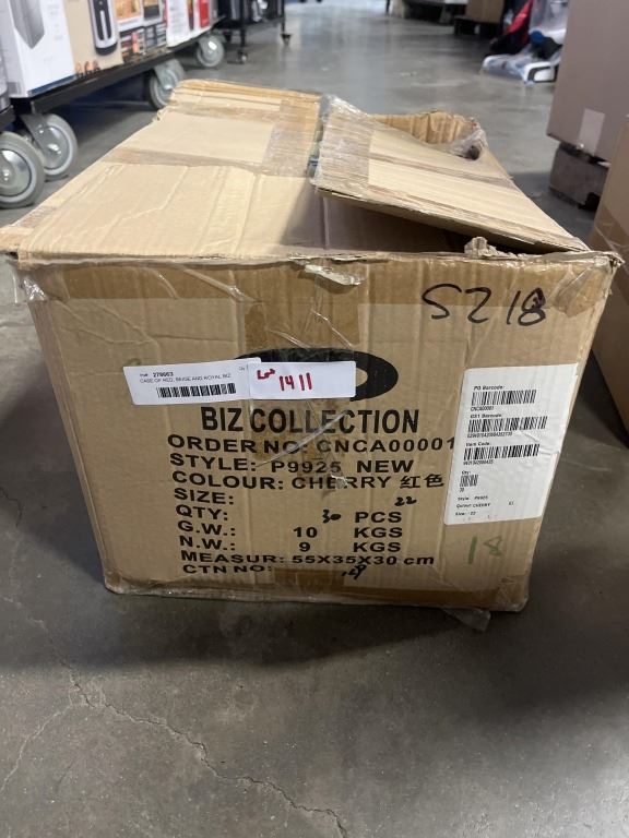 CASE OF RED, BEIGE AND ROYAL BIZ COLLECTION LADIES SHIRTS