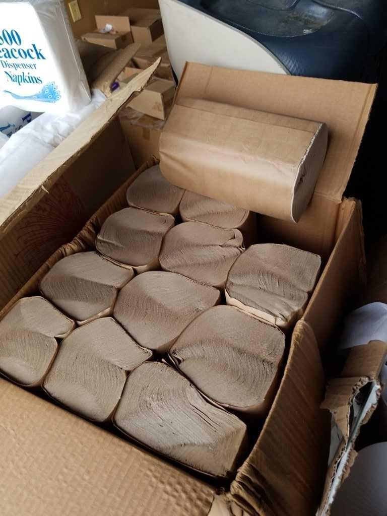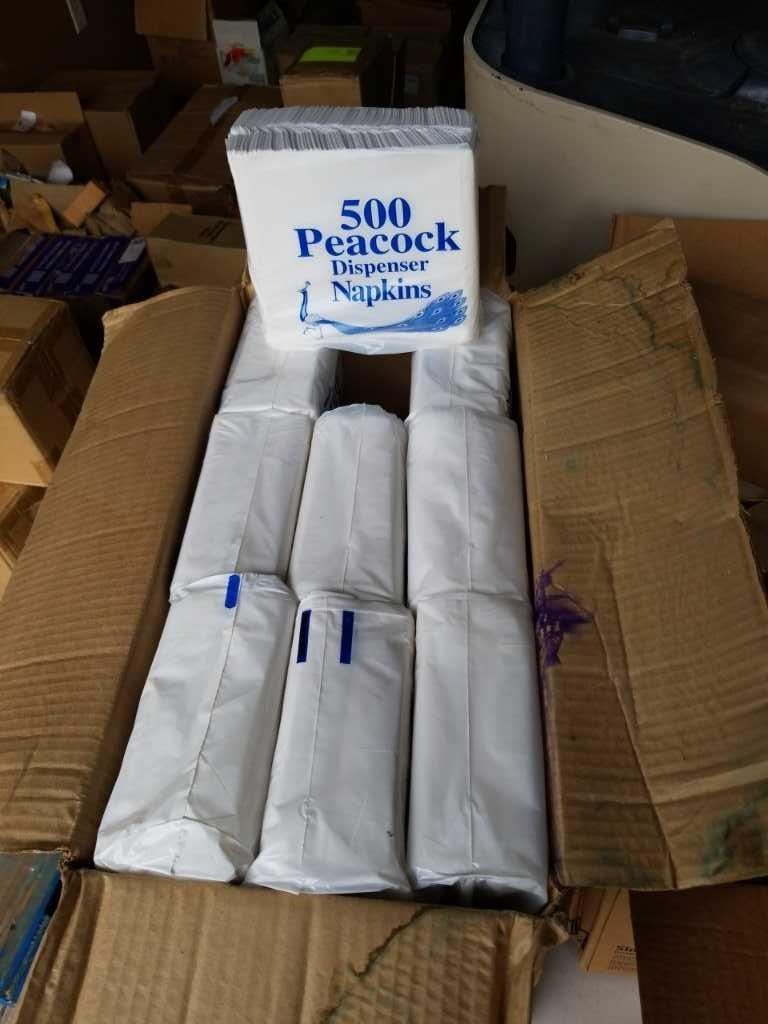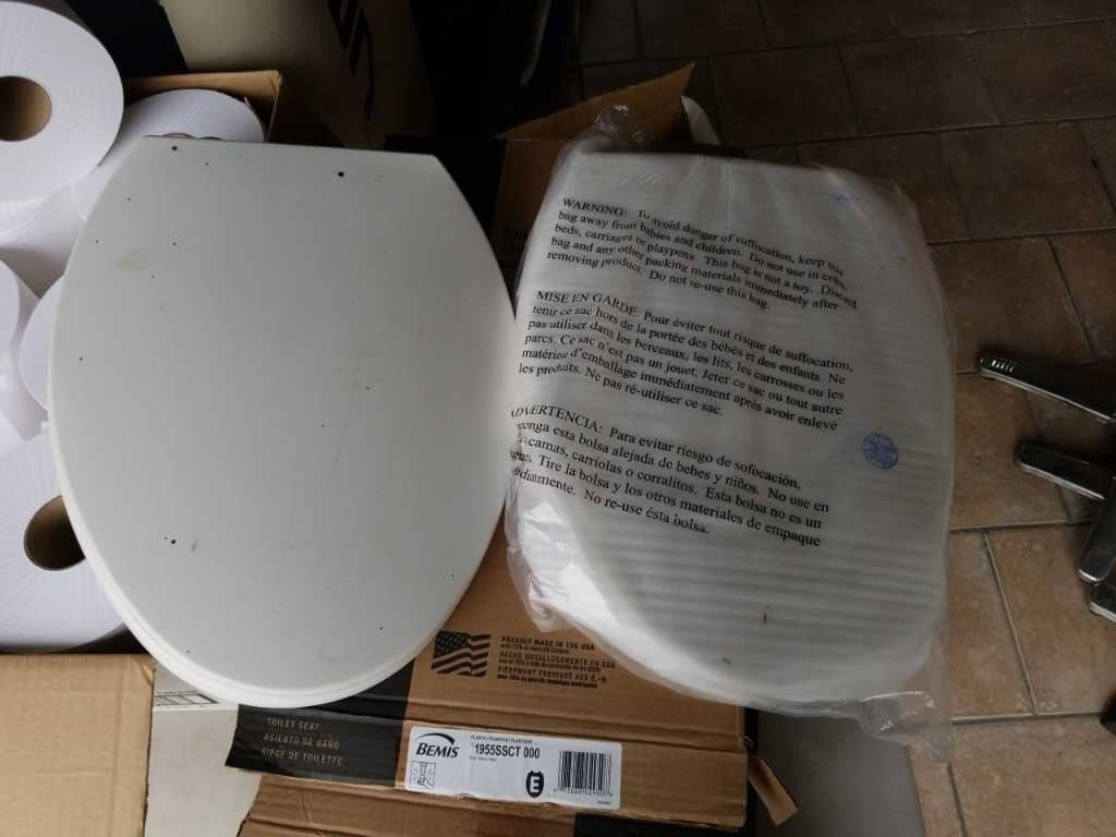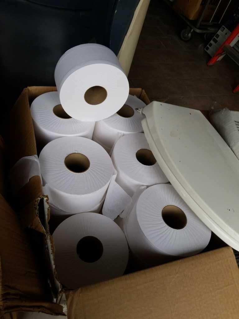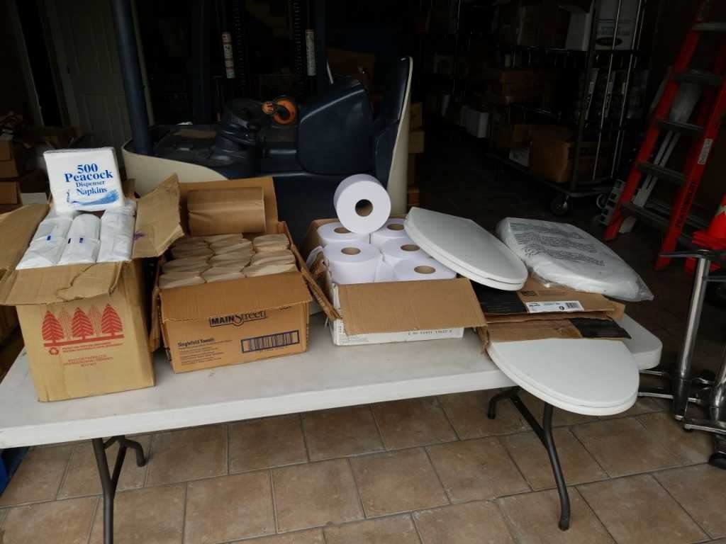 CASE OF TOILET PAPER, 2 CASES OF NAPKINS AND 3 TOILET SEATS