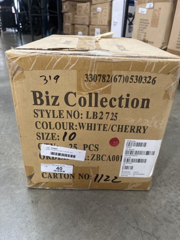 CASE OF WHITE AND CHERRY BIZ COLLECTION LADIES NEW YORKER 3/4 SLEEVE SHIRT