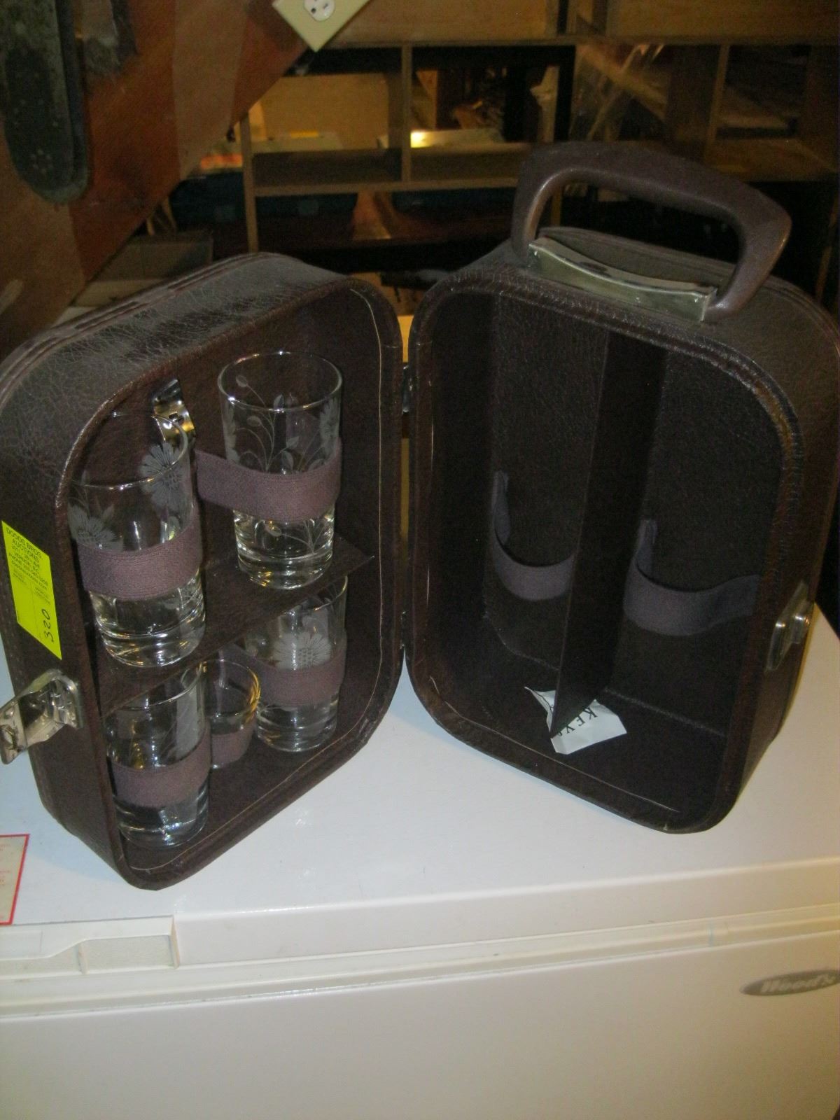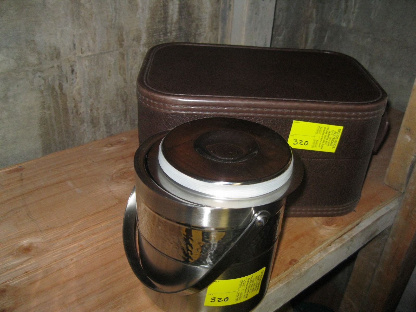 CASED LIQUOR BAR SET & AN ICE PAIL