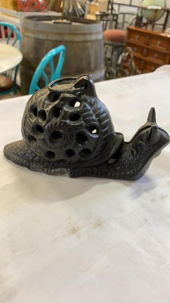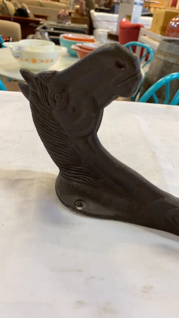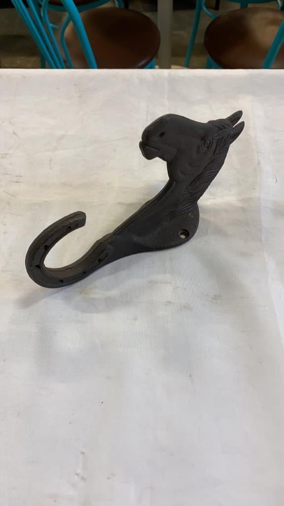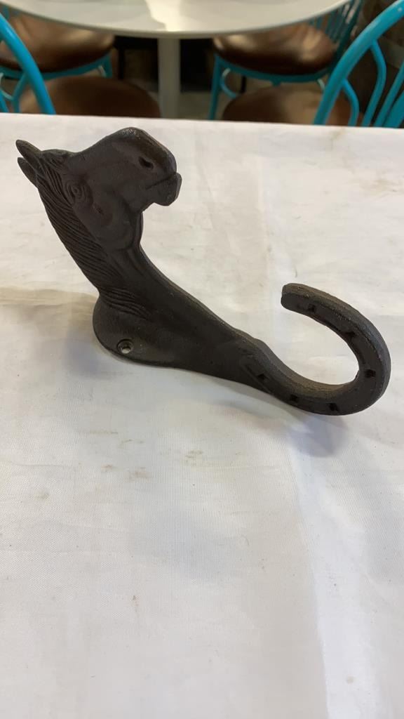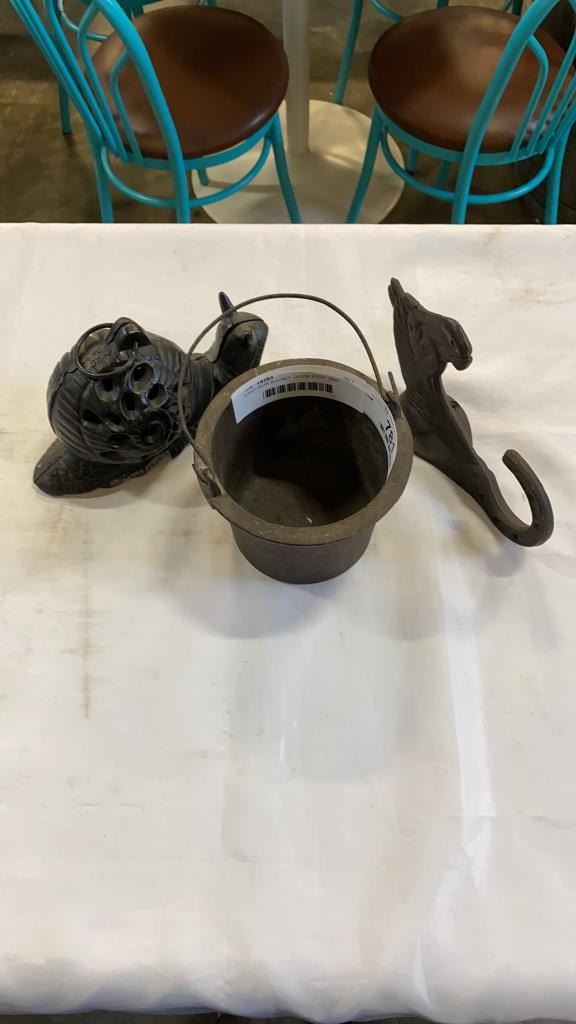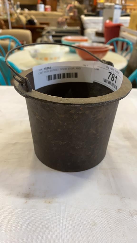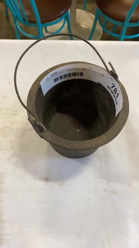 CAST IRON BUCKET, DOOR STOP, AND WALL HOOK