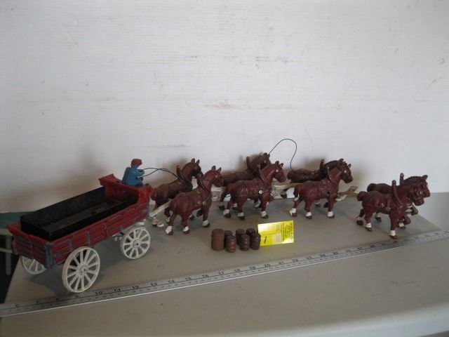 CAST IRON WAGON WITH 8 HORSES