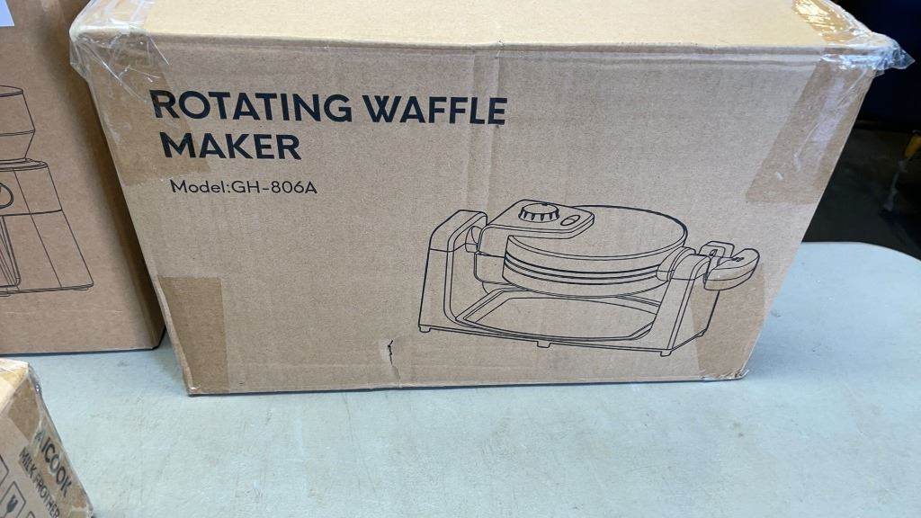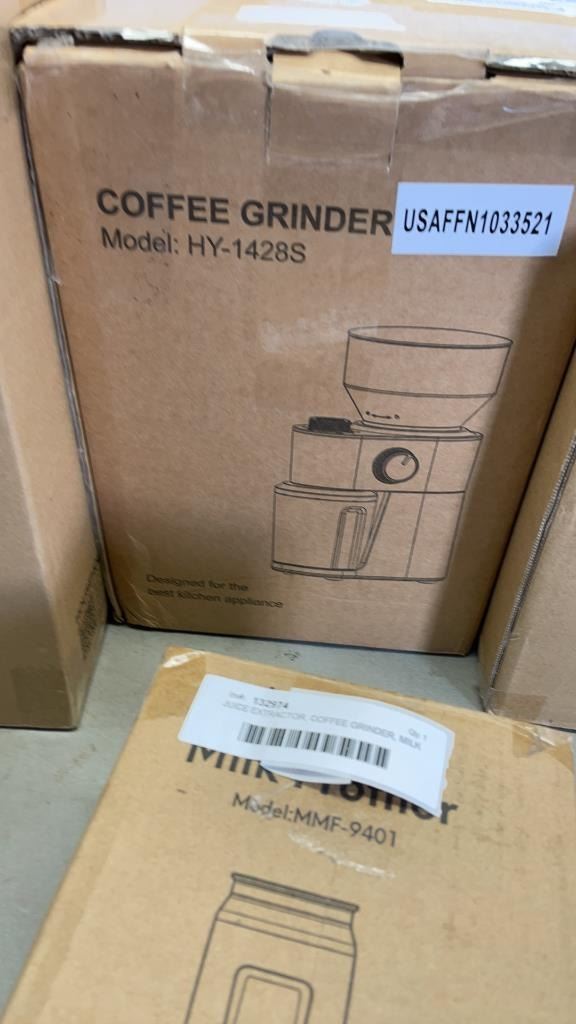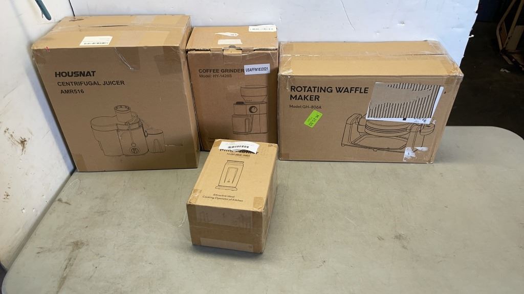 CENTRIFUGAL JUICER, COFFEE GRINDER, MILK FROTHER, AND DOUBLE ROTATING WAFFLE MAKER - AMAZON RETURN, UNTESTED ITEMS