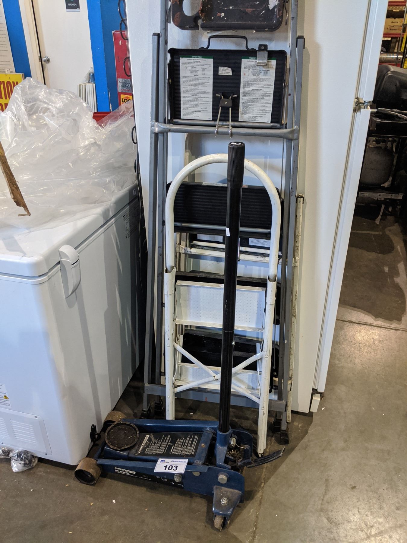 CERTIFIED FLOOR JACK AND 3 STEP LADDERS