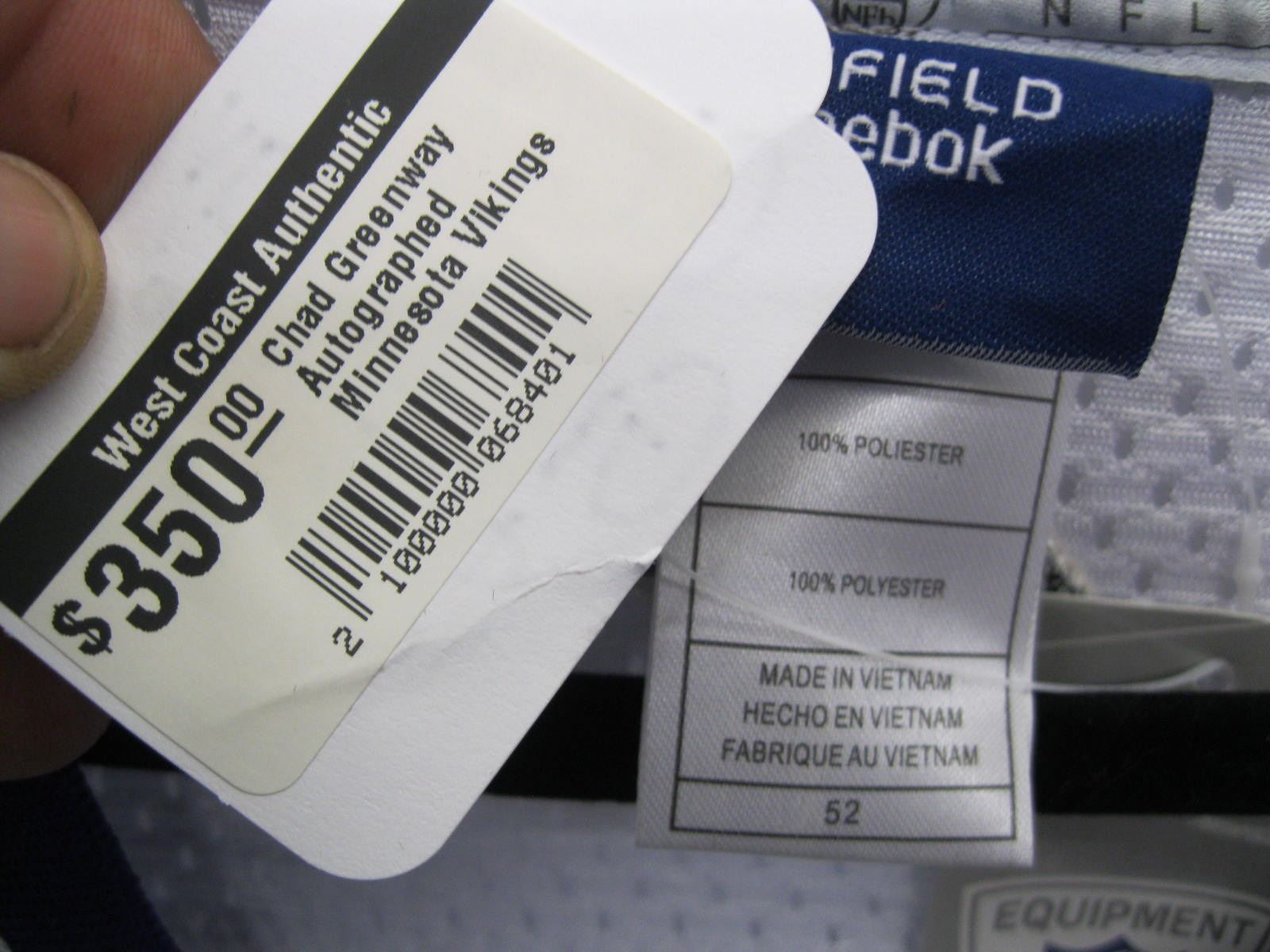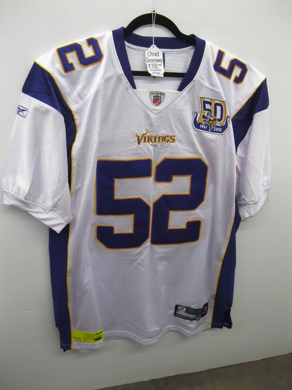 CHAD GREENWAY SIGNED MINNESOTA VIKINGS JERSEY - SZ 52