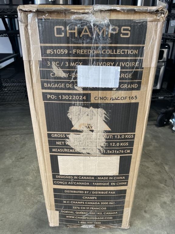 CHAMPS FREEDOM COLLECTION 3 PIECE HARD SIDE EXPANDABLE LUGGAGE SET, RETAIL $1199