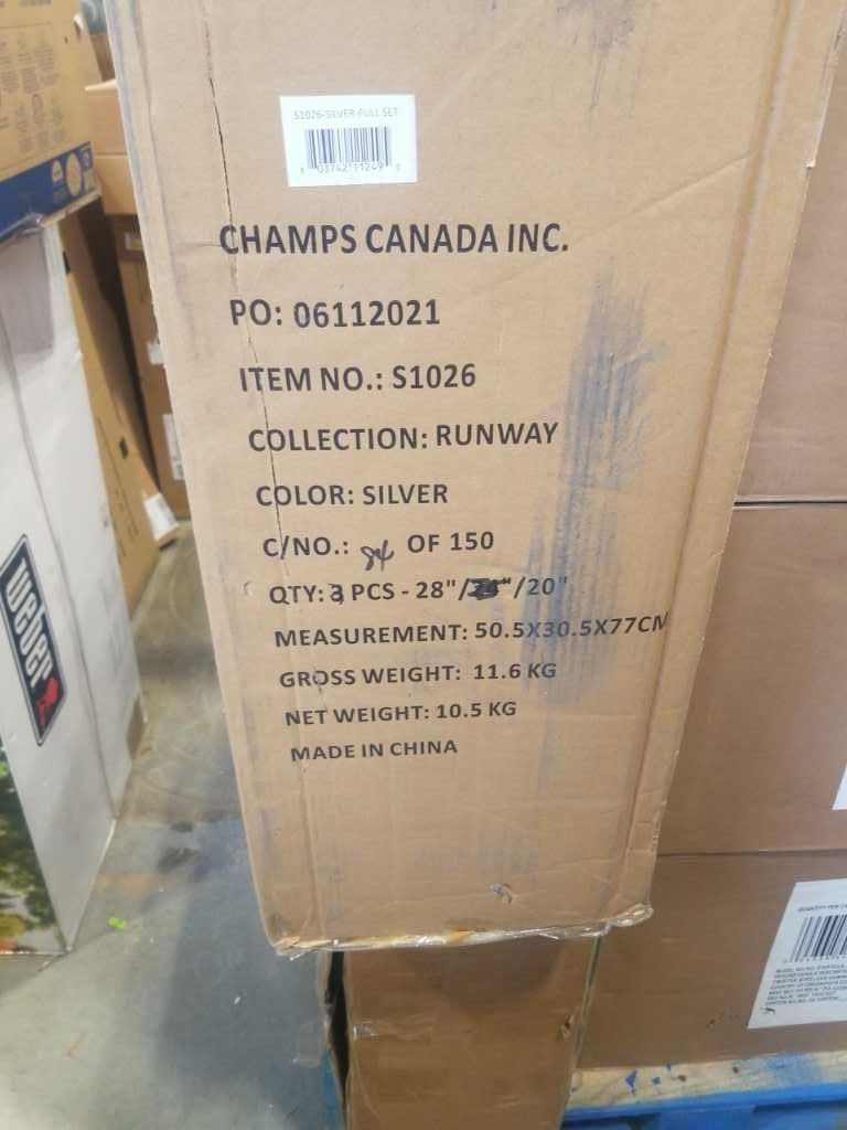 CHAMPS SILVER RUNWAY 2 PIECE LUGGAGE SET - INCLUDES 28 INCH AND 20 INCH LUGGAGE, RETAIL $799