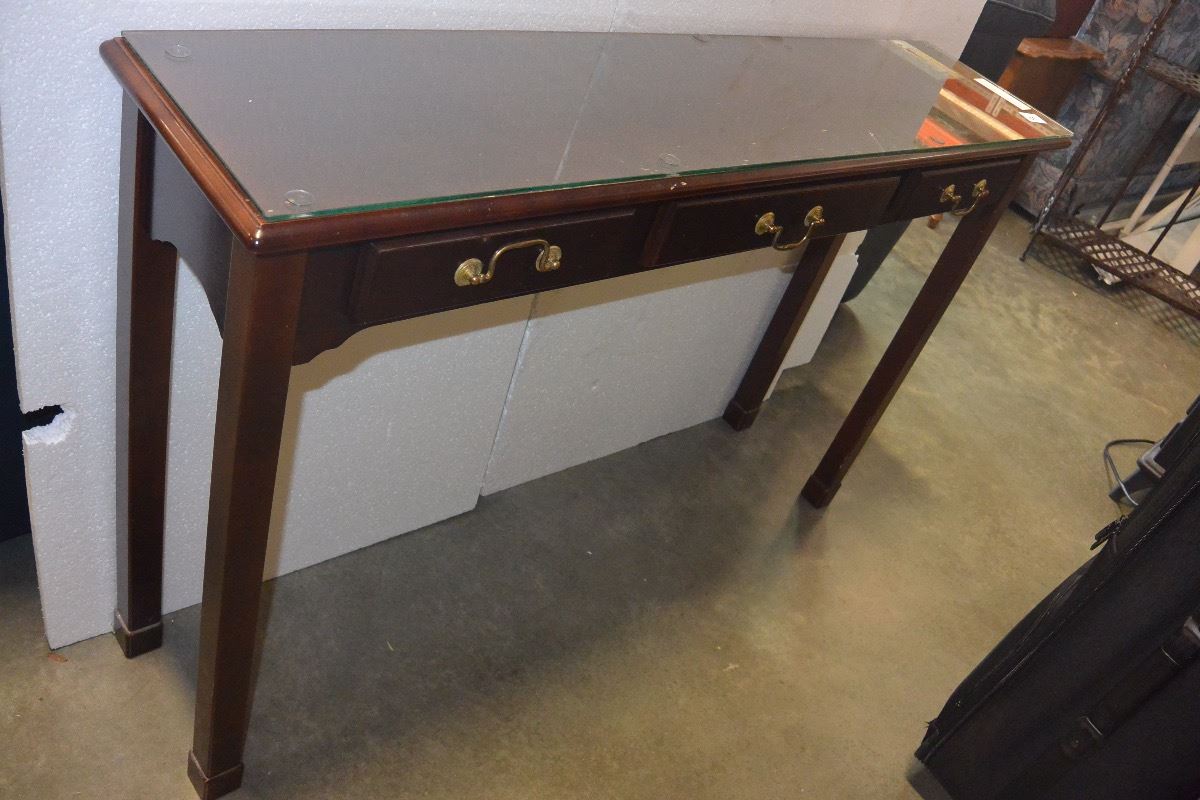 CHERRY FINISH GLASS TOP SOFA TABLE