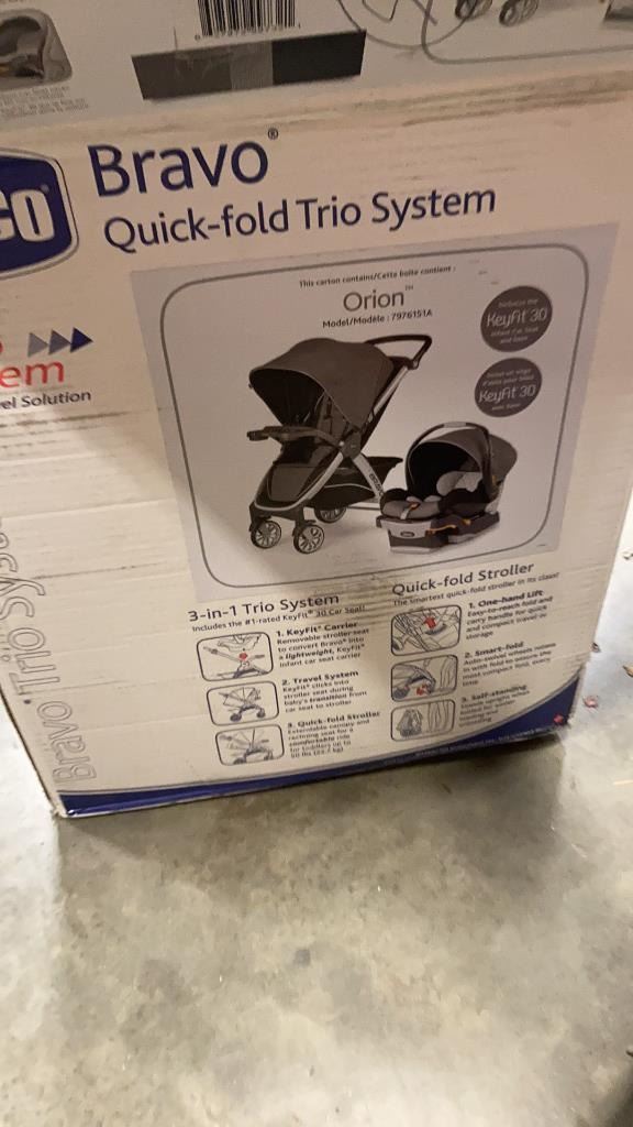 CHICCO BRAVO QUICK FOLD TRIO STROLLER SYSTEM - RETAIL $829