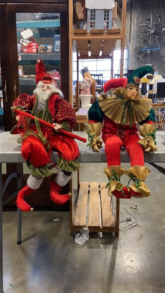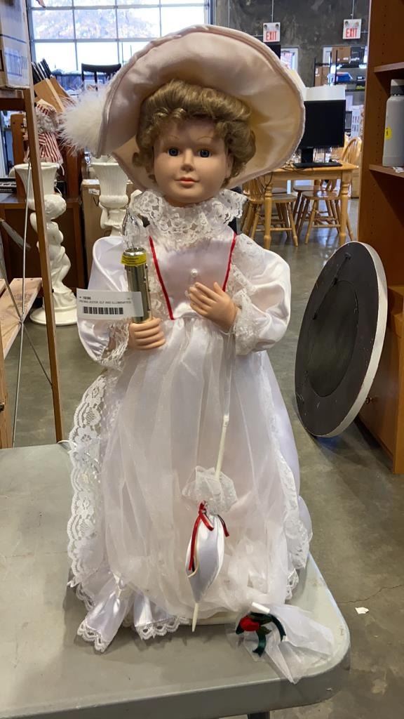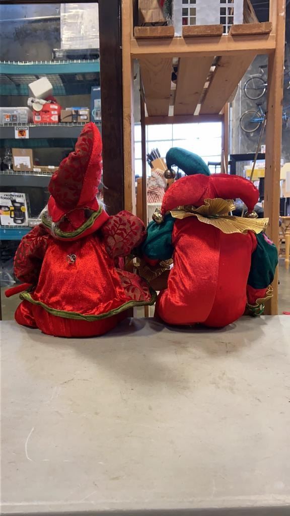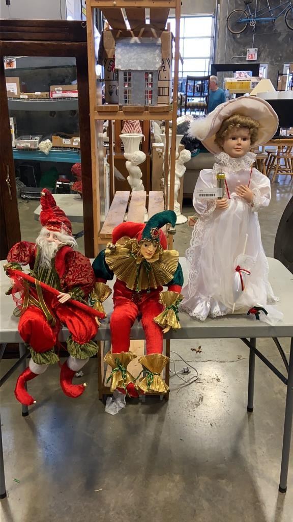 CHRISTMAS JESTER, ELF AND ILLUMINATED GIRL STATUE