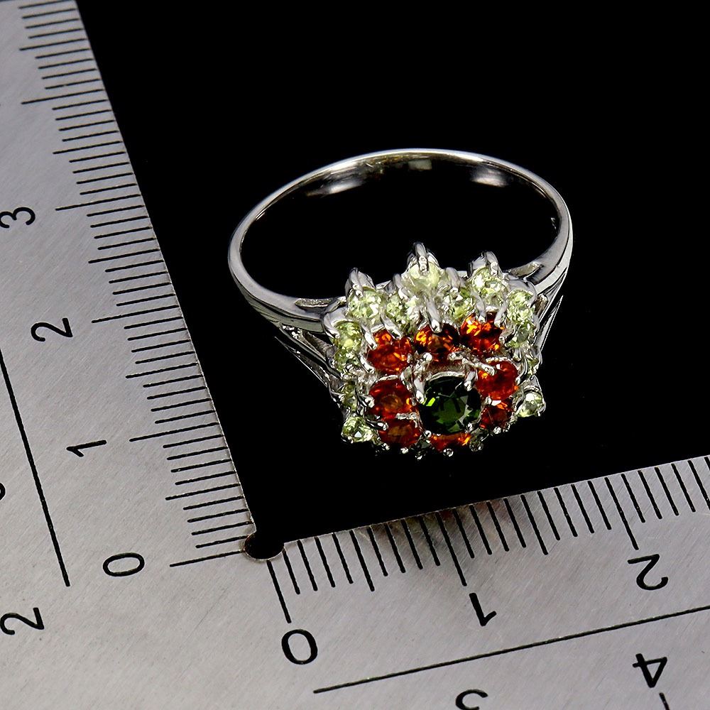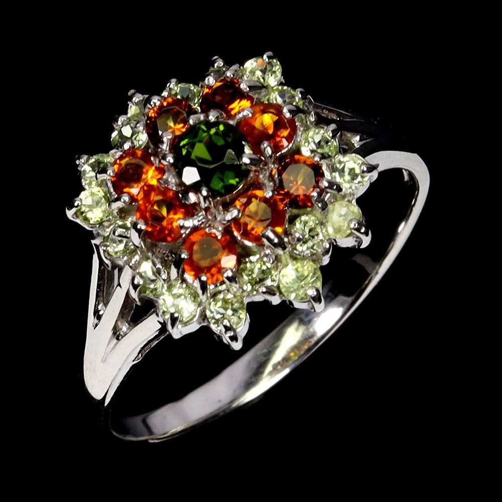 CHROME DIOPSIDE, CITRINE, PERIDOT RING IN 14K WHITE PLATED GOLD OVER 925 STERLING SILVER - SIZE 9 -