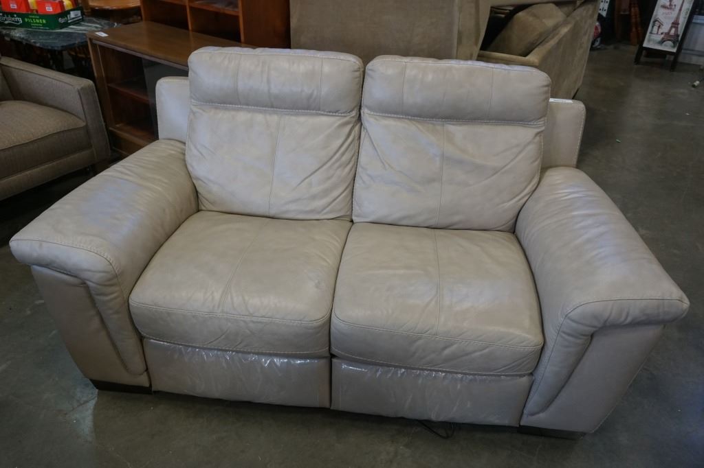 CINDY CRAWFORD HOME LEATHER ELECTRIC RECLINING LOVESEAT