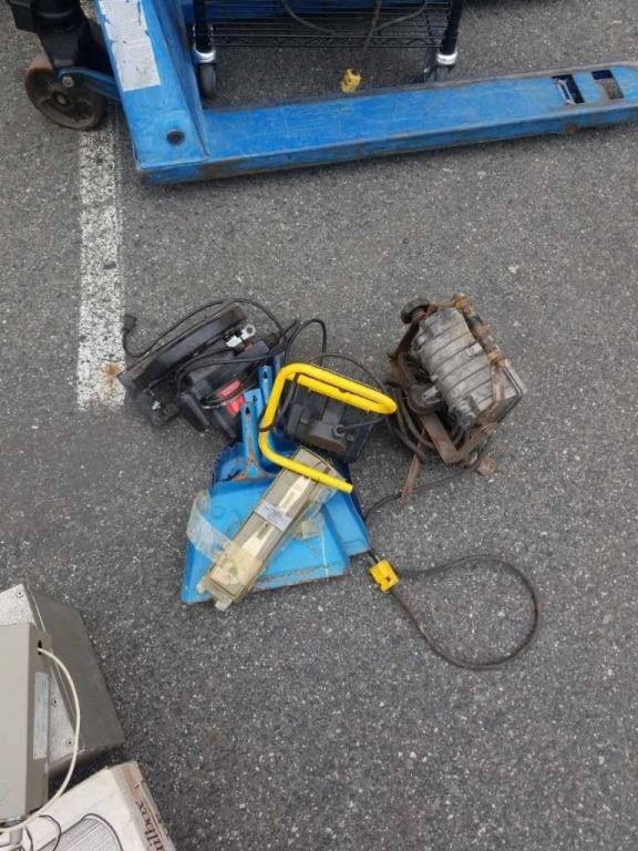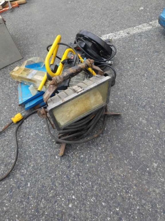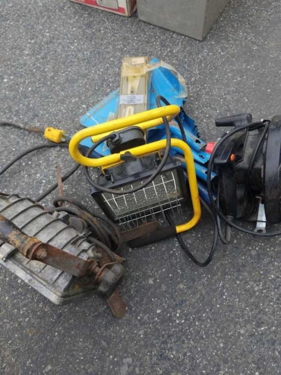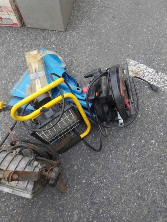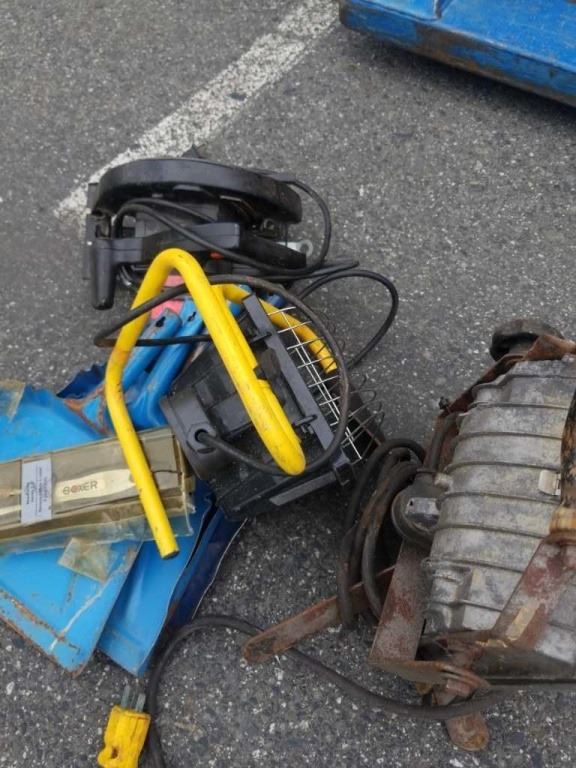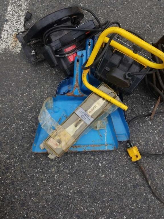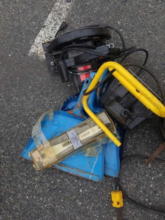 CIRCULAR SAW, BOXER RATCHETING SOCKET WRENCH, 2 SHOP LIGHTS AND 3 DUST PANS
