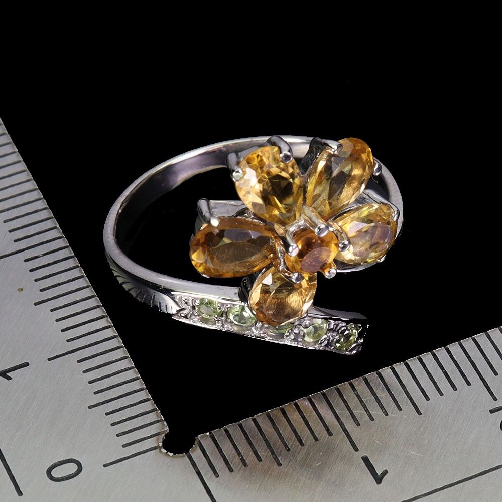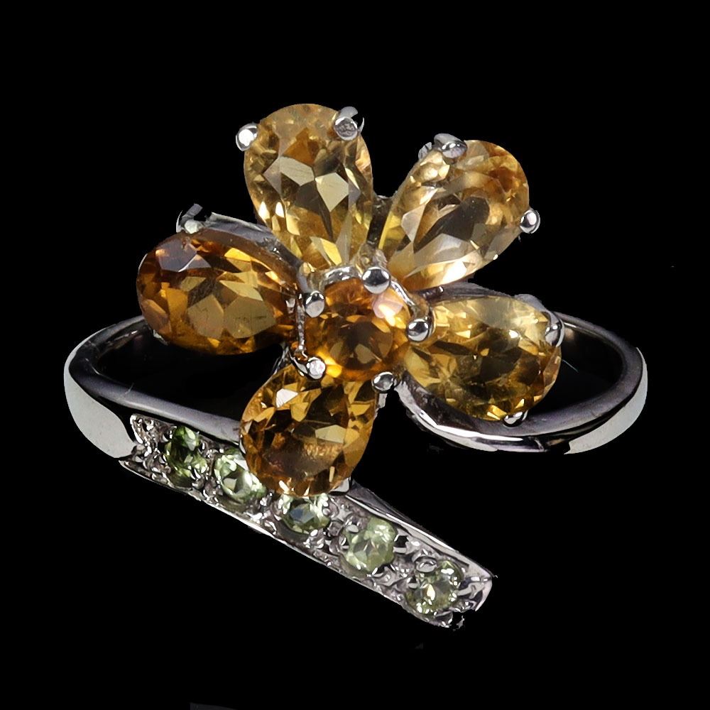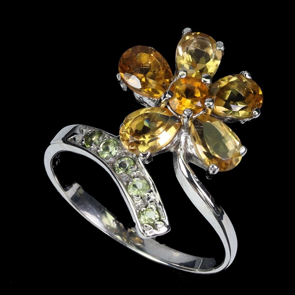 CITRINE AND PERIDOT RING IN 14K WHITE PLATED GOLD OVER 925 STERLING SILVER - SIZE 8 - APPRAISED REPLACEMENT VALUE