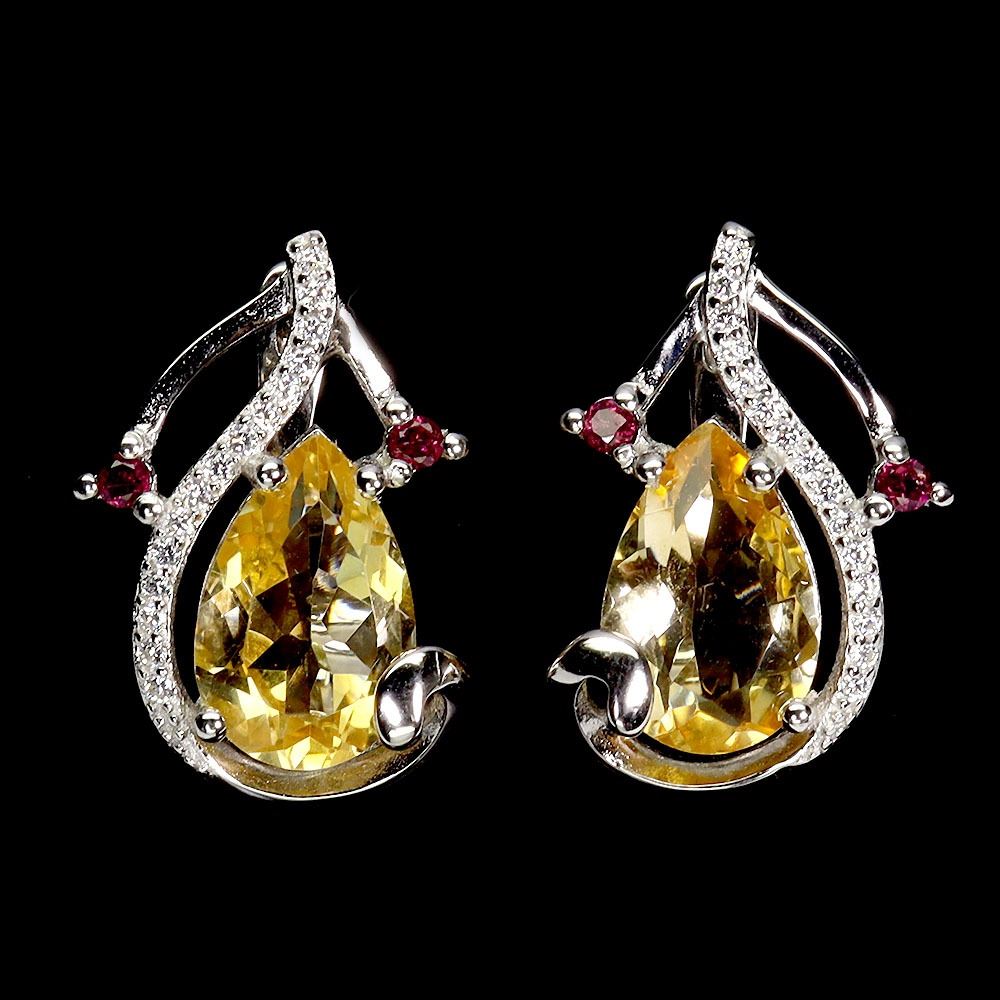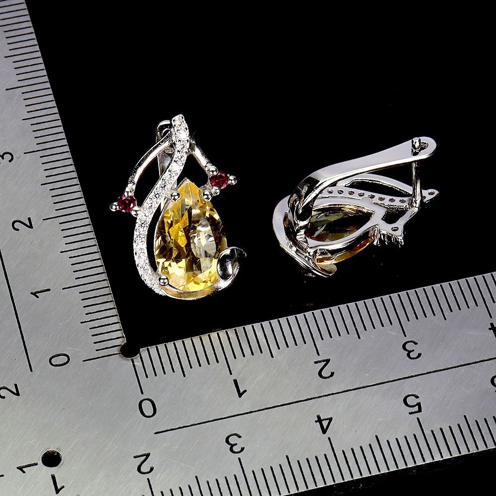 CITRINE AND RHODOLITE GARNET EARRINGS IN 14K WHITE PLATED GOLD OVER 925 STERLING SILVER - APPRAISED REPLACEMENT VALUE