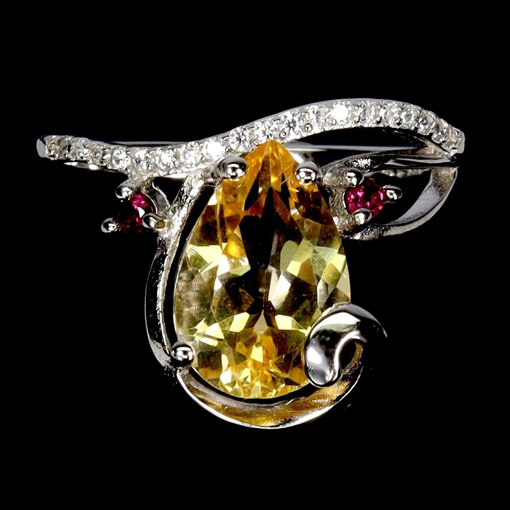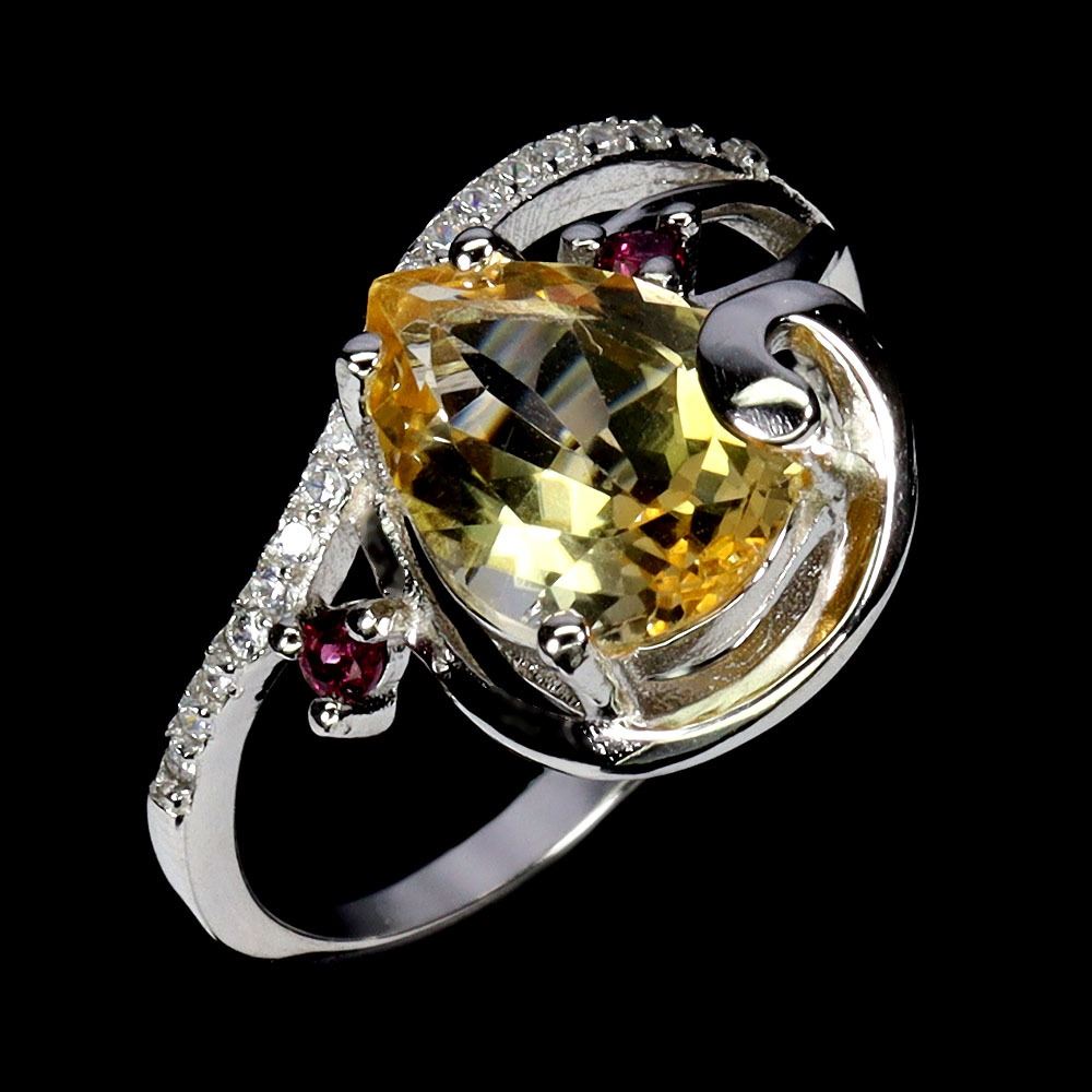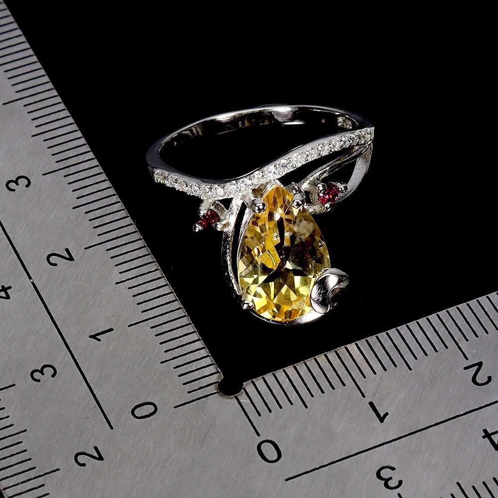 CITRINE AND RHODOLITE GARNET RING IN 14K WHITE PLATED GOLD OVER 925 STERLING SILVER - SIZE 7 - APPRAISED REPLACEMENT VALUE