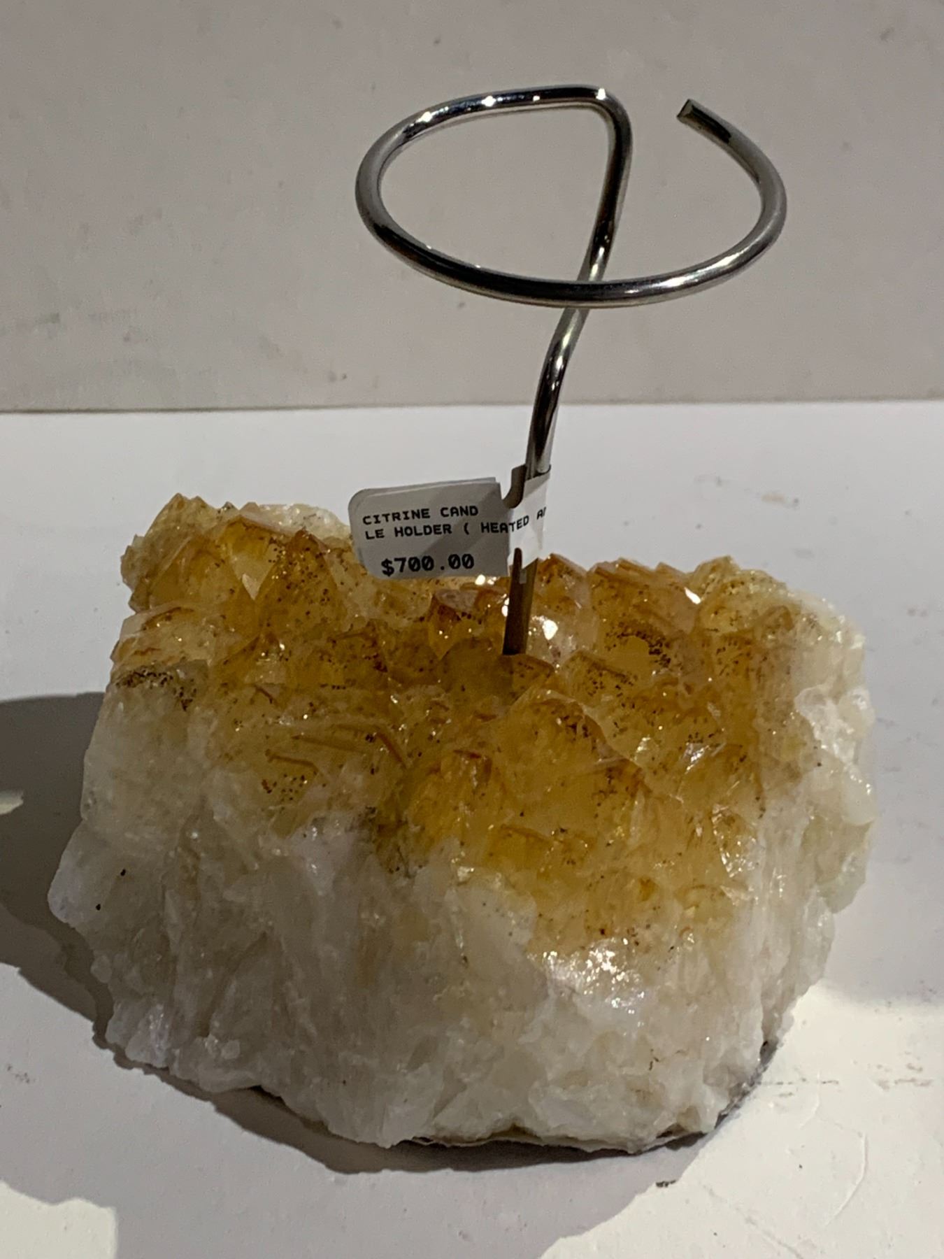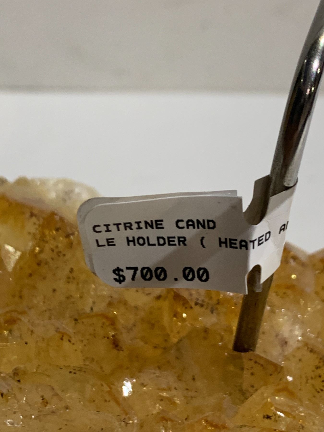 CITRINE CANDLE HOLDER (HEATED AMETHYST) APPROX 4.5"X4.5"X3"- RETAIL $700