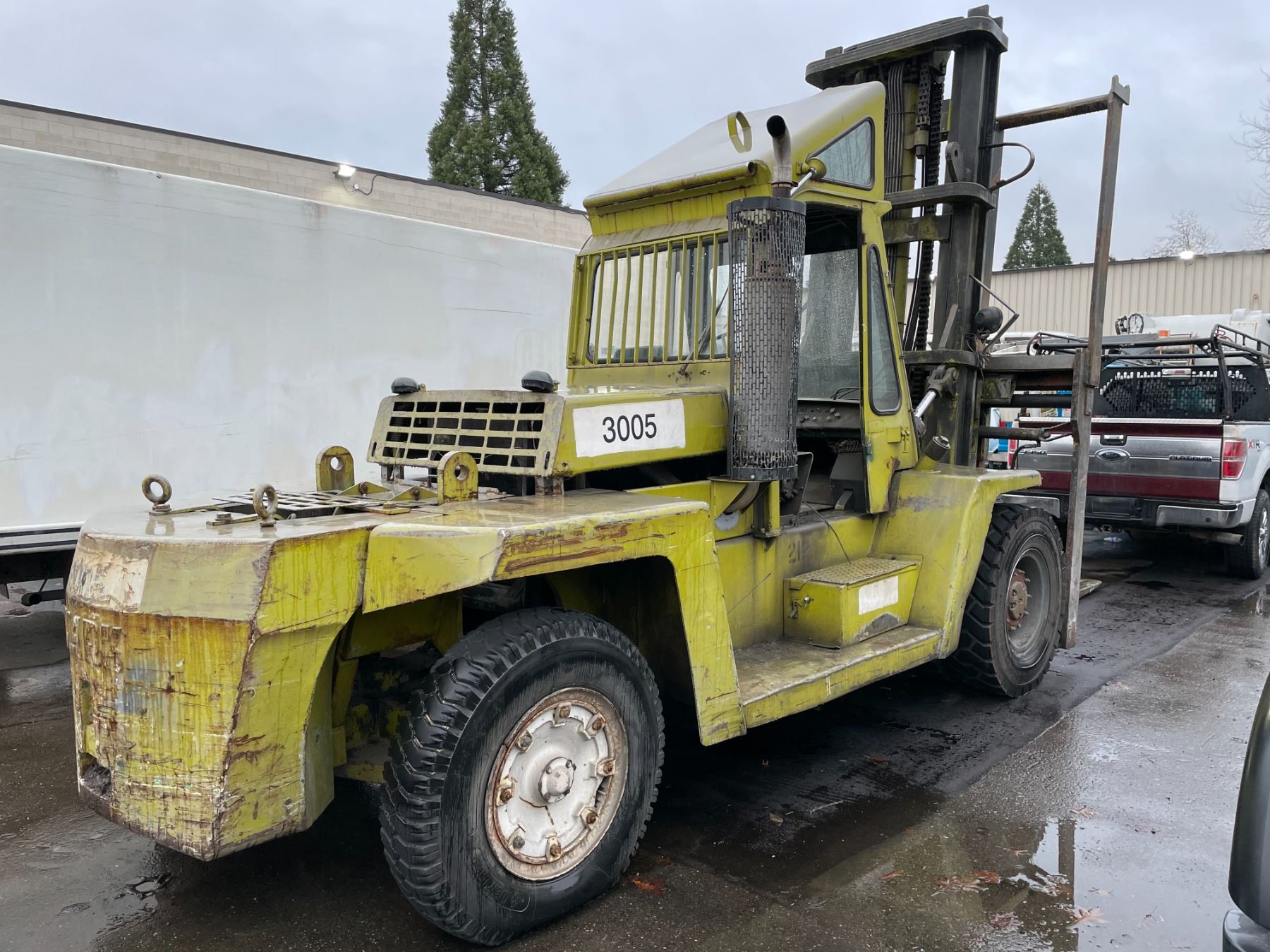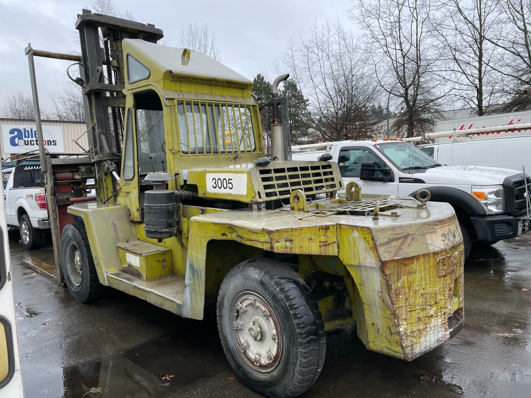 CLARK 30,000LB CAPACITY 2 STAGE DIESEL FORKLIFT WITH SIDE SHIFT, TILT & ADJUSTING FORKS HOUR METER READS 7,754HOURS (HOURS NOT VERIFIED)