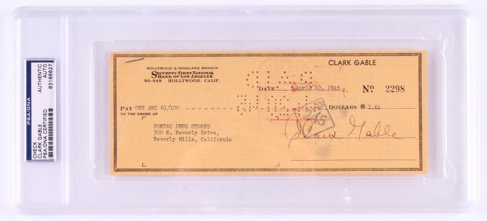 CLARK GABLE SIGNED CHECK (PSA/DNA CERTIFIED) AUTHENTIC