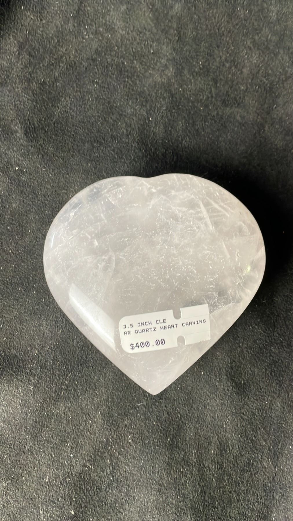 CLEAR QUARTZ HEART CARVING 3.5" RETAIL $400