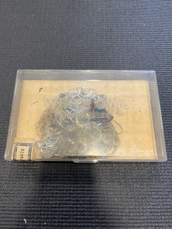CLEAR WHITE OWL CIGAR BOX WITH VARIOUS ESTATE CHAINS AND JEWELRY